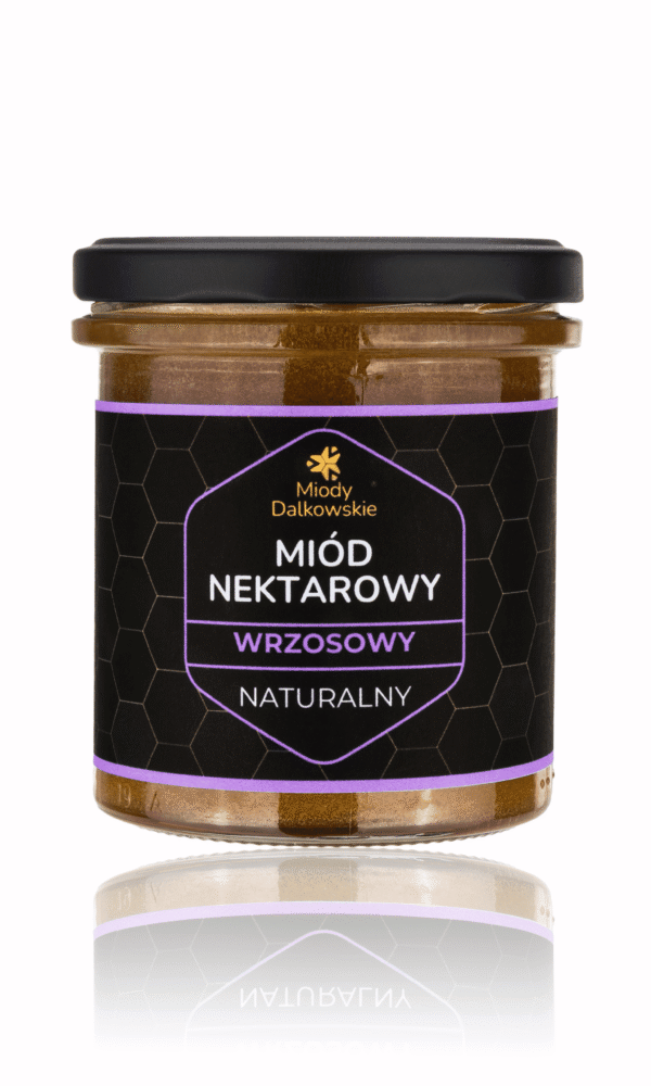 - ⎔ Miód Nektarowy Wrzosowy – Ciemny, o intensywnym smaku, wspiera układ moczowy, pomaga przy infekcjach dróg moczowych.